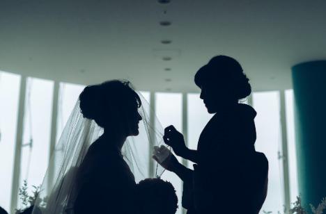 挙式は人前式。今回新婦の隣でエスコートしてくれるのは新婦のお母様です。ヴァージンロードは今までの人生を表しています。大好きなお母様と一歩ずつ今までの出来事を思い出しながら歩いていただきました。そして新婦様の手をお母様の手から新郎様へつながれました。”幸せになってね”そんな想いがお母様の背中から伝わる、親子の愛溢れる挙式です。