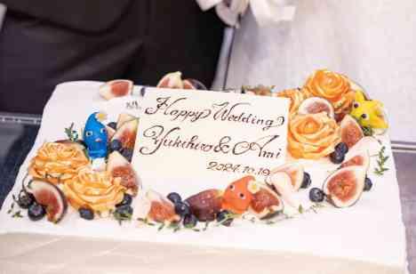 ウエディングケーキは新婦様のお勤め先の方がデザインしてくださったお二人のためだけのもの!ひっそり隠れているようなかわいらしいキャラクター、本物のようなお花の飴細工、できるのならずっと残しておきたいですね。ゲストの皆様もかわいい~!と喜ばれておられました。お二人のためだけに作られたケーキ。皆様に愛されているお二人だと実感しました