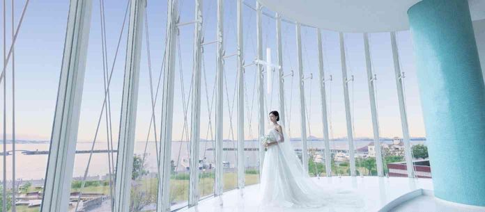 天井までガラス張りのチャペルにさらにプロジェクションマッピングも