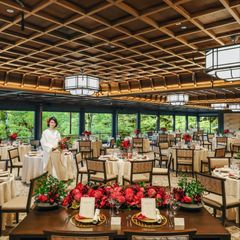 【日本庭園を一望する披露宴会場】和も洋もどちらも映える落ち着いた雰囲気の会場を実際に先輩カップルのお写真等を交えながらご案内!大人数のパーティから少人数の会食までご希望にあわせてご紹介いたします
