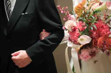 挙式では、胡蝶蘭柄の美しい白無垢をお召しになった新婦様。ヘアにも大きな胡蝶蘭のヘッドドレスをお召しになり、新婦様の白無垢姿をさらに華やかに彩りました。お母様にお手を取っていただきながら、厳かに進む参進の儀。人との縁を大事に考えられていたおふたりが、ご両家の皆様にあたたかく見守られながら、夫婦の誓いを固く交わされました。