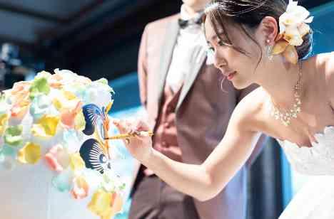 おふたりの晴れの日を彩ったのは、新郎様のご出身地である群馬県名産の“高崎だるま”。ゲストにはお好きな色の花びらを思い思いにだるまに貼り付けていただき、新郎様新婦様はそのだるまに目入れをしていただきました。ゲストとともに創り上げられた、インパクトに残る結婚証明書。新郎様の地元愛があふれた、思い出深い演出となりました。