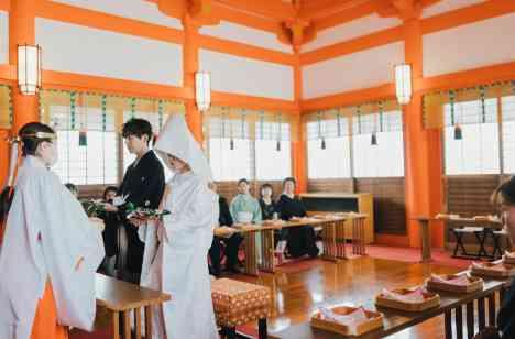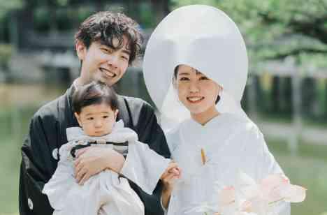 いよいよ迎えられた、7月7日の結婚式。 境内では『七夕風鈴まつり』を開催しており、いたるところに吊り下げられた無数の風鈴が、辺りに涼し気な音色を響かせていました。 挙式の前には親御様やゲストと、そしてご家族3人でも写真撮影を愉しまれ、誓いの時に向けて穏やかに過ごされたおふたり。 新婦様の身支度を仕上げていただく“紅差しの儀”では、母娘の優しい絆が感じられるシーンに。