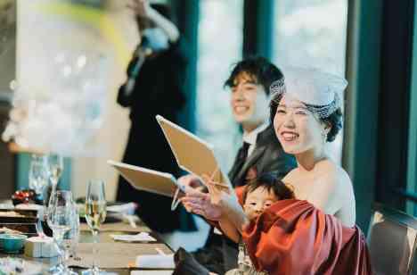 家族想いの新郎様新婦様。お子様を心から愛され、お互いをも思いやるお姿が印象的でした。 これまでの人生を支えてくださったかけがえのない方々へ、結婚を報告し、感謝の心を伝えるおもてなしがしたいと誠実にご準備くださったおふたり。 テーマは、リラックスしてお寛ぎいただける結婚式。 そんなおふたりの想いが結ばれる一日となるよう、スタッフも心を込めてサポートさせていただきました。