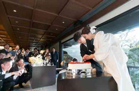 ゲストと盛り上がる演出として、小さなこも樽を使用した鏡開きを実施。 各ゲストテーブルにお配りしたこも樽を、大きな掛け声とともに一斉に開かれました。 中に入っているおみくじをおひとりおひとりに開封していただき、見事“大吉”を引き当てたゲストには豪華なプレゼントをご用意。 笑顔の絶えない結婚式は、大盛況のうちにおひらきとなりました。