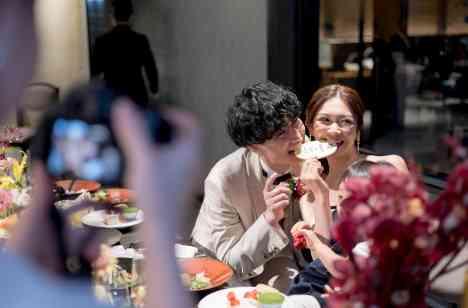 たくさんの苺でかたどった“だるまケーキ”をご用意。 まずは新郎様から新婦様へ一口。 そして新郎様のファーストバイトの際には、姪御様が大きなスプーンを手にご登場。 さらにサンクスバイトでは、おふたりのキューピッドとなった上司の方々へ。 お仕事にちなんで手作りされたオリジナルスプーンでケーキを掬い、おふたりの感謝の気持ちを味わっていただきました。