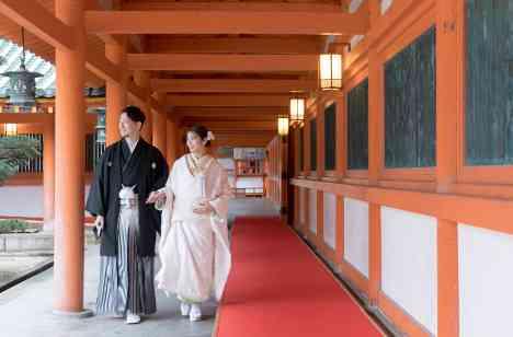 いよいよ迎えられた結婚式当日。新婦様は、日本の伝統美・白無垢に身を包んでご登場。目を惹く華やかな晴れ姿で、ゲストの皆様を魅了しました。参進の儀では、大切なゲストとともに一歩一歩を丁寧に。緊張感と高揚感を高めつつ、皆様と心を一つに歩まれました。厳かな雰囲気がただようなか、神様に結婚のご奉告をされ、御神縁によって固く結ばれたご両家。おふたりの誠実なお人柄が伝わる、清らかで美しい神前式となりました。