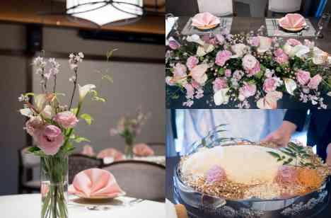 披露宴会場はパステルピンクのアイテムで彩り、春爛漫ムードに仕上がりました。ゲストのあたたかな祝福でいっぱいに満ちた会場へ、新郎様新婦様がご入場されました。ゲストの乾杯のご発声のあとには、和装にぴったりな鯛の塩釜開き演出を。開かれた鯛をお互いに食べさせ合っていただいたあとには、大切なゲストにも振る舞われました。