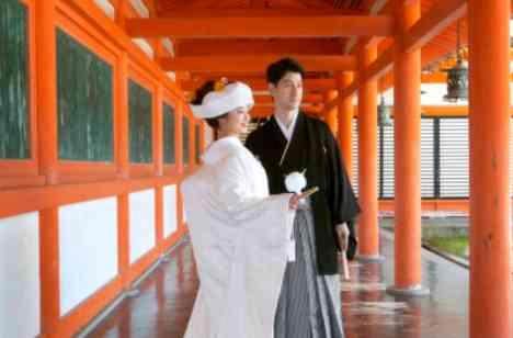 おふたりがご結婚式を挙げられたのは、紅葉が綺麗な秋。神苑が紅葉に色づく中、白無垢に身を包み、新日本髪に結い上げ、角隠しやべっ甲簪がとてもお似合いの新婦様。平安神宮の赤の回廊に憧れの白無垢がとても映えます。挙式は厳かな雰囲気の中、一般非公開の儀式殿にて執り行われました。挙式後には皆様とお写真撮影も愉しまれ、和やかな時間を過ごされていました。