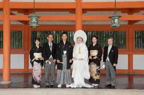 挙式は平安神宮の儀式殿にて厳かに、ご家族の皆様に見守られながら夫婦としての誓いを結ばれたおふたり。挙式後には、国の名勝庭園に指定されている神苑や朱色が美しい平安神宮の建物を背景に、沢山お写真撮影を愉しまれていました。平安神宮会館は平安神宮のすぐ隣にあるので、移動もスムーズなのが魅力の1つ。ご年配のゲスト様にも安心してお過ごしいただきました。
