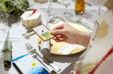 おふたりの門出を祝う演出は、鯛の塩釜開き。「よいしょ!」と開くとゲストの皆様から大きな歓声が上がりました。そして披露宴の中での一番の盛り上がりは、おふたりの好きな歴史を皆様と愉しみたい、とお考えくださった百人一首を用いたゲーム!ひとりひとりのテーブルに置かれた札が会場を雅に彩りながら、趣きある時間となりました。