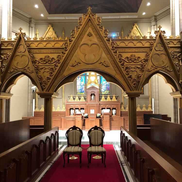 天井もかなり高くて、空間がとても広く感じました。椅子や、装花なども、おしゃれで、とても素晴らしいと思いました。