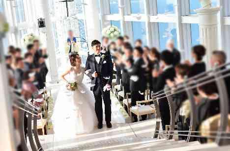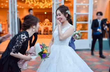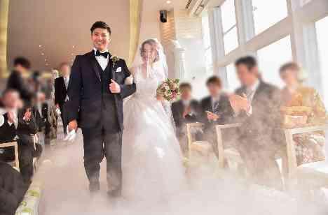 親族と友人が多いことから、なるべく人が多く入れる挙式会場を希望しており、ゲストだけでなく、私たち自身が会場に入った瞬間にも感動できる造りが気に入りました。入場時に足元からスモークが出てきて、退場時には羽が降ってくる演出は、幻想的でした。何度も悩んで衣装合わせに行き、1番気に入った衣装を着て入場することができて、本当に満足でした!