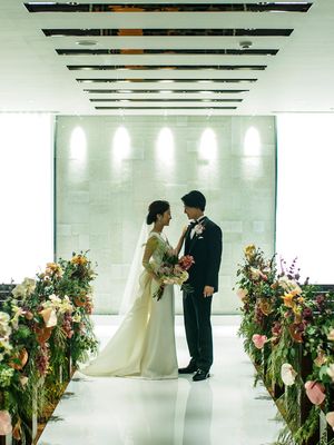 シンプルな雰囲気のチャペルだからこそ、バージンロード装花や祭壇装花でおふたりらしさや結婚式のテーマを表現していただけます。季節の雰囲気にも合わせて専任のフローリストがここでしか叶えられないオリジナルの空間をご提案いたします。