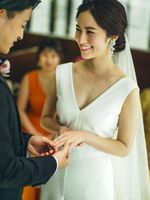 おふたりに柔らかな光が降り注ぎ、花嫁の姿をより一層美しく輝かせます。ゲストとの距離が近いアットホームな挙式がか叶います。