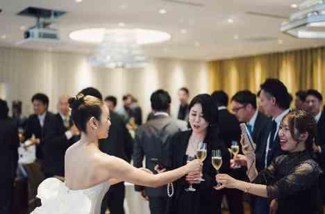 友人中心のパーティーは、ふたりが心から楽しみたいと思っていた時間です。ゲストとの距離が近い会場で、和やかに会話を交わしたり、思い出話に笑ったり。友人による余興や写真撮影も盛り込み、ふたりらしいカジュアルな雰囲気で進行しました。友人たちの自然な笑顔に囲まれながら、ふたりもリラックスして過ごすことができ、結婚式のもうひとつの顔として、特別で賑やかな時間となりました。