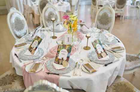 会場に足を踏み入れた瞬間に気持ちがぱっと明るくなるよう装花のコンセプトは「ピンク×カラフル」に。 ゲストテーブルにはパステルピンクのテーブルランナーを合わせてとびきりお洒落なコーディネートを叶えました。春らしいパステルカラーの生花を使った季節感あるコーディネートは自然光差し込む明るい「ニース邸」の雰囲気にもぴったりでした。