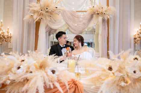 アパレルのお仕事をされているご新婦様。会場コーディネートにとことんこだわってお打ち合わせを進めていきました。テーマカラーは「White×Gold×Pink」会場装花だけでなくウエディングケーキやウェルカムアイテムもテーマカラーを合わせて統一感を◎メインテーブルにはお花だけでなく、布もお洒落に合わせて個性をプラスして素敵な空間を作り上げられました。