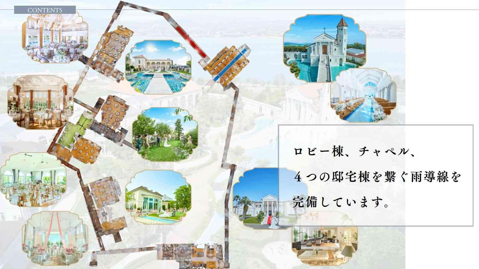 【無料駐車場120台×送迎バス付】6000坪の広大な敷地にウェディングの為だけに創られた街。都心から車でわずか30分圏内とは思えない圧倒的な解放感と、バリアフリーな快適空間でゲスト想いの一日を。