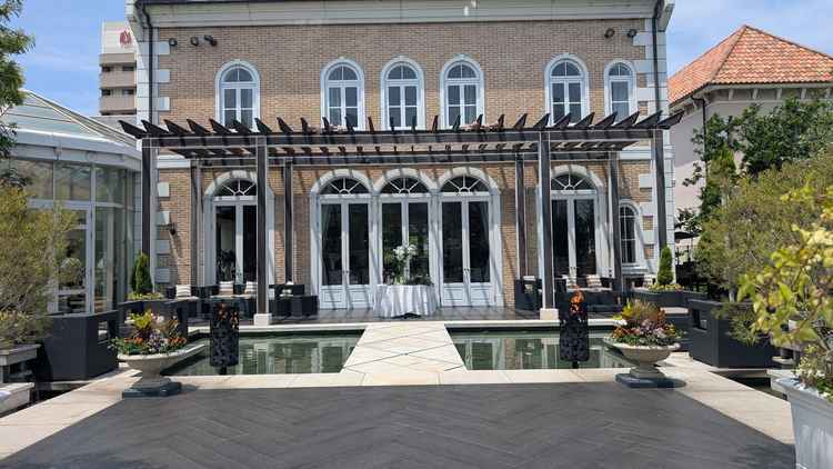 中庭や各披露宴会場のガーデンが魅力ですが、雨天時は屋根付きの場所を移動できるように作られているので、雨天時もそれはそれでいい雰囲気になりそうだなと思います。バリアフリー面気にしていましたが、車椅子貸出OKで、車椅子の昇降機があるのでそこもケアされていそうでした。