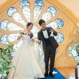 - 純白のウェディングドレス姿が綺麗に映える 床から天井まで一面のステンドグラス