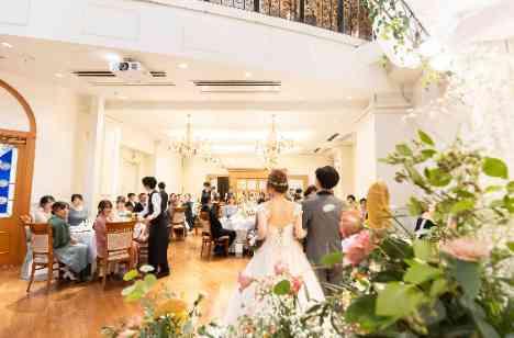 主役になりすぎたくない…そんなおふたりも入場だけはメリハリをつけて盛大な登場シーンを演出。好きな曲が流れだしたら、おふたりもゲストも笑顔いっぱい。カメラを構えておふたりの姿を撮影!たくさん悩んで選んだお気に入りのカラードレス。階段の上からの登場で、ゲストに全身姿をお披露目。素敵なワンシーンで、記録にも記憶にも残る登場に。