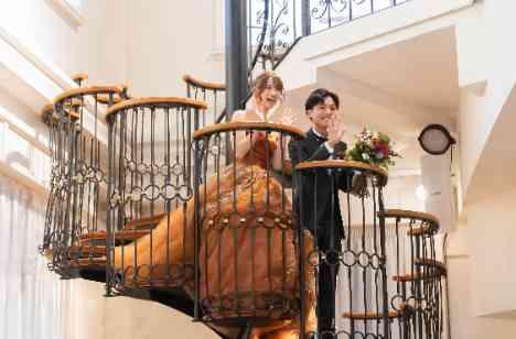~お花の形が素敵ならせん階段からの入場~