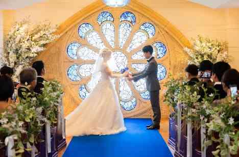 東京アフロディテのチャペルは【青いバラ窓】が特徴。 純白のウェディングドレスが綺麗に映えるチャペルで誓う感動セレモニー。 大切なゲストから12輪の青いバラを集めて花束を作るブルーローズセレモニー。「これかも宜しくね」という想いを込めて、大切なゲストの祝福に包まれながらプロポーズ。全員の記憶に残るオリジナルセレモニー。