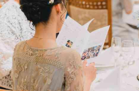 教職員の新婦様。ご自身のお仕事を活かして手作りされたプロフィールブックは、懐かしの【通知表】をコンセプトに!ゲストひとりひとりに合わせてメッセージと写真を入れて作成したプロフィールブックは、おふたりの想いが込められた素敵なアイテムに。席に座ると会場中にたくさんの笑い声と笑顔が溢れました。待っている時間も楽しませる工夫が散りばめられたウェディングに。
