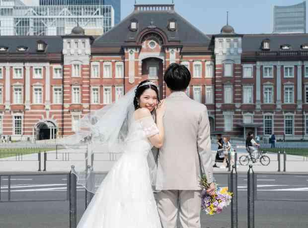 最初にお会いした時から笑顔がとっても可愛い新婦さま。そんな新婦さまを優しそうなお顔で見守る新郎さま。どんなドレスも素敵に着こなす新婦さまが悩みに悩んで選んだドレスでたくさんの写真を残したい!そんな希望を叶えた<前撮り撮影>。館内では、当日は残す事ができないカメラ目線やポーズを決めた撮影。また、人気の東京駅や丸の内の町並みでもたくさん撮影を!