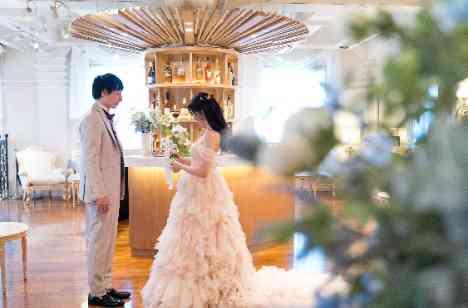パーティー会場の上には、バーカウンター付のラウンジがあります。お色直しをして入場する前に、おふたりだけの特別な時間をご用意。純白のドレス姿とは全く違う雰囲気の新婦さまをドキドキしながらお待ちいただく新郎さま。ドレスの色味やデザインはもちろん、ヘアスタイルも変わります。ゲストには気づかれないおふたりだけの大切な時間を用意できるのも貸切一軒家の特長です。