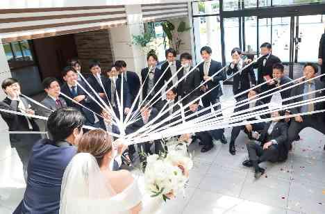 自然光が入り木の温もりを感じられるチャペル、 全天候型の大階段で天候に左右されずに 「やりたい」が叶えられる大階段が会場を選んだ決め手でした! 挙式後のアフターセレモニーでは、誰も取り残されず、全員参加で楽しめる演出がやりたくて、男性友人ゲスト全員参加のゴムパッチンプルズを行いました。「会場の一体感がすごかったね!」と皆様から嬉しい言葉をいただきました。