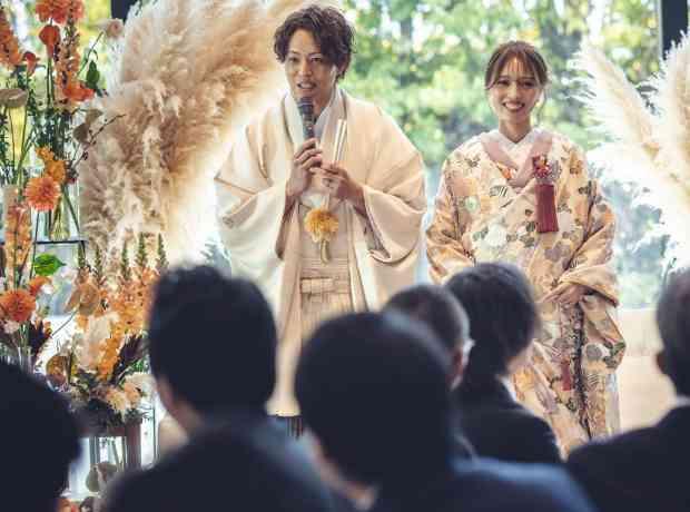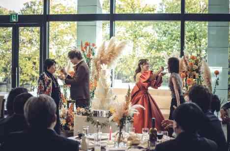 ゲスト全員が参加でき、楽しめる進行を常に考えていました。また、やりたいことは全部やるをモットーに 衣装は全部で3着・高砂の花もボリュームアップ・ケーキも高さのあるものへ・映像も妥協をしませんでした! 入場は和装を着用しましたが、ケーキ入刀はカラードレスで行いたかった為、打ち合わせの中で進行を変更していただきました!