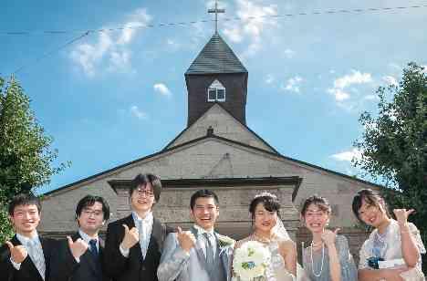 挙式は新婦が通っていた教会で、と考えていました。 挙式当日は、ザ・リーヴスプレミアムテラスのスタッフの皆さんも教会へきてくださり、その教会での写真や映像もたくさん撮ってくださいました。家族や友人、そしてリーヴススタッフにも見守られながら挙式ができ、とても嬉しかったです!