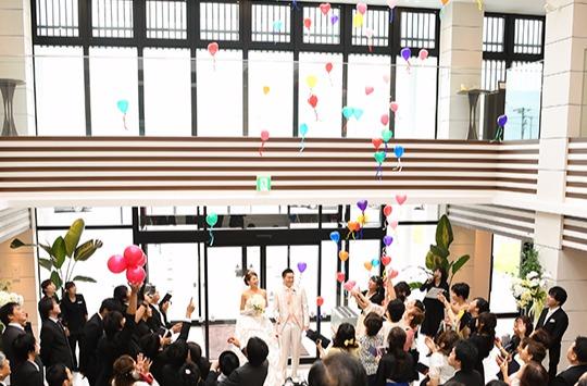 緑・水・光が溢れる開放的なチャペルだからこそ、お二人はもちろんゲストの皆様も自然に笑顔がこぼれます。一生に一度の大切な日だからこそ、お二人とゲストの皆様の一瞬一瞬の表情を残して欲しい。そんな想いから全天候型でいつのお時間でも明るく、その日のそのお時間だからこそ残せる景色と共にお過ごし頂けます。ぜひご一緒に最高の一日を、最幸の一日として実現していきましょう。