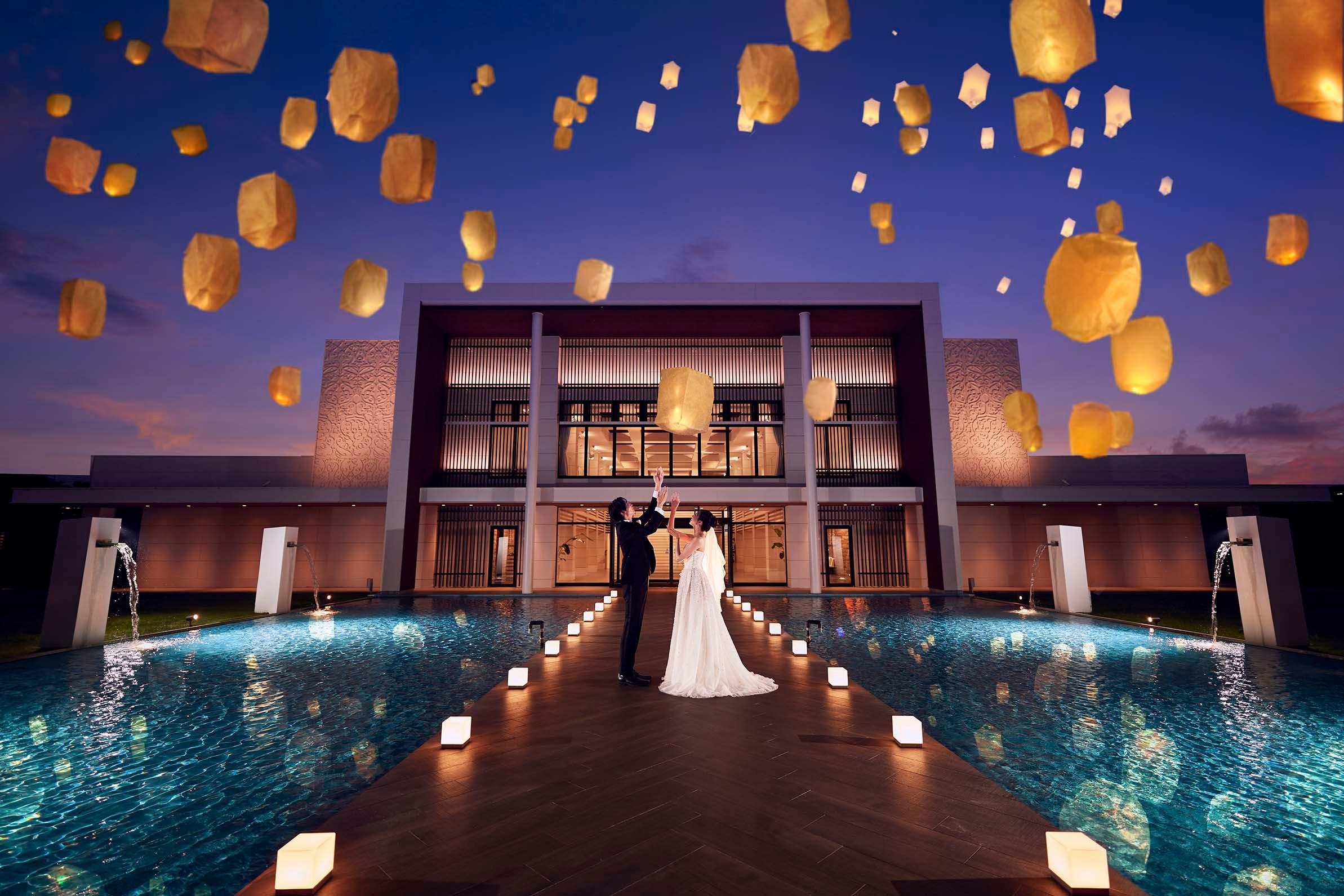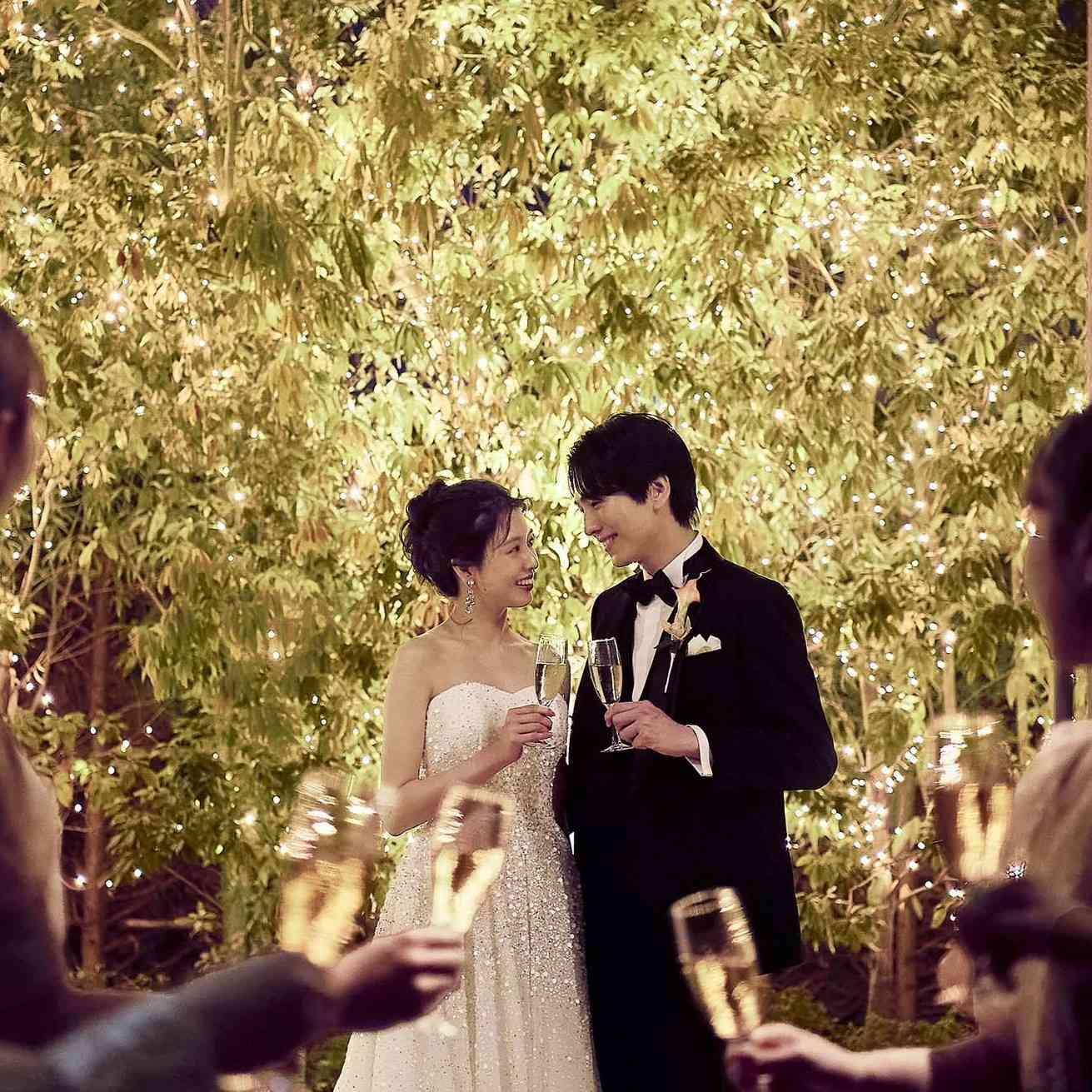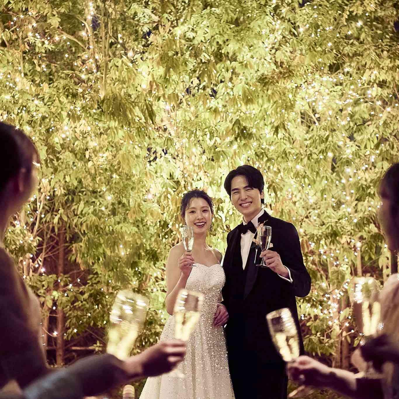 緑に囲まれた煌びやかなイルミネーションが彩る特別な空間。大切なゲストとのロマンチックなひと時をお過ごしいただけます。
