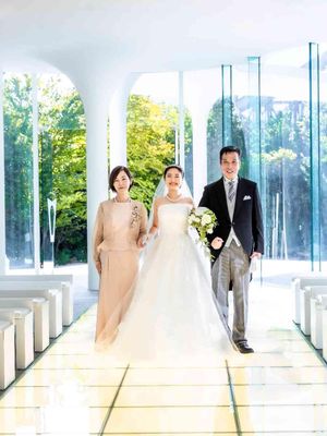 2.4m幅のバージンロードは、新郎のもとに向かう道を今まで育ててくれたご両親と共に三人での入場も叶います 感謝の気持ちを込めて、一歩ずつ大切に歩む時間