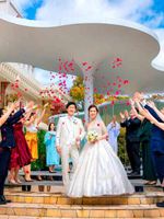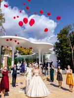 新郎新婦、ふたりの幸せが天まで届きますようにという意味を込めてバルーンを飛ばす華やかな演出。挙式のあとに新郎新婦とゲストが一斉に空に向かって風船を飛ばします。 空高く舞い上がるバルーンは、今後新婚生活を迎える新郎新婦の幸せが天高くまで届くようにとの意味が込められています。