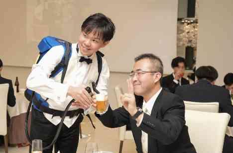 新郎様のゲストはお酒好きな方が多数ご出席! ビールサーバーは必ずやりたい!と当初からのご希望でした。新郎様が各テーブルをビールサーブしながらまわり、ゲストの方と談笑したりと新婦様のお色直し退席中も盛り上がるひと時となりました。 お色直しでは新婦様が一目ぼれした真っ赤なドレスをお披露目されました。