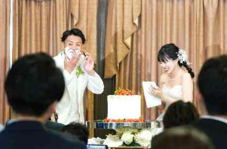 彼へのサプライズを用意しました!ケーキカットとそれぞれのファーストバイトの後、たっぷりクリームのついたハンカチで彼の顔を拭いてあげました。口の周りが真っ白になった彼を見たゲストもとびきりの笑顔になりました。ゲストの皆様とたくさん写真を撮ったり話をしたり楽しい雰囲気で過ごしたアットホームな時間となりました。