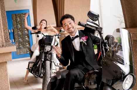 手作りのオープニングDVDに合わせて、お二人はバイクで入場されました。前日に何度も入場の練習をし、当日は大成功!会場は大盛り上がりでした。 初めてお会いした時から「絶対バイク入場がしたい!」と仰られていて、実現した時はスタッフも喜びのあまりハイタッチ。とってもかっこいい、こだわりの詰まった入場シーンでした!