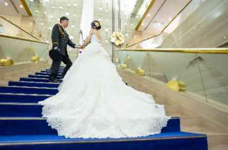 御新郎様のご職業が警察官であったため、前撮り、本番共に警察官式典用の正装で撮影、登場をされました。警察官の方や自衛隊の方は式典用の正装があり、結婚式などではよくそのお姿を拝見いたします。ラヴィーナ姫路ではそういった式典用正装でのお写真、ご登場を問題なく承ております。お相手様のご親族様にも自分のご職業を紹介すことができ、とてもいい機会だと思います。