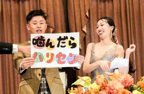 御新郎様が結婚式当日に足を運んでいただいたお客様に対してウェルカムスピーチをされることは、最近では多く見受けられるようになってまいりましたが、このお二人は少し趣向を凝らして、御新郎様がスピーチ途中に噛んでしまったときは御新婦様が「ハリセン」で叩くという演出をされました。どうやらうまく噛まずにスピーチできたようですが、、、。