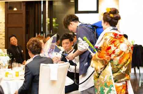 「ゲストと一緒に楽しめるアットホームな披露宴」がご希望でしたので、「ビールサーバー」をご提案しました。当日はお二人が大好きなプロ野球チームのユニフォーム・グッズを着用して各テーブルを回られました☆なかなかゲストとお話しする機会が少ないので各卓演出を取り入れたことによってアットホームな結婚式になりました♪