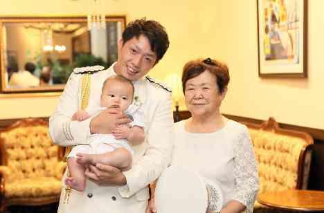 お母様へのサンクスバイト、中座のエスコート役におじいちゃん、おばあちゃん。産まれたばかりのお子様のご紹介ムービーを流し、一緒にテーブル毎に記念撮影。今までご家族様と過ごした時間を振り返って頂き、これから二人で家庭を築いていく決意を新たにする時間でした。
