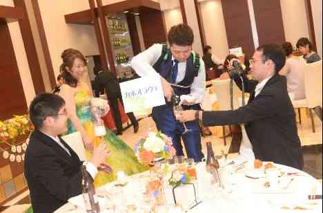 ゲストの方にも楽しんでもらいたい!おもてなしをされたい!とのことでビールサービスを行いました♪お二人がお近くへ寄られるとグラスを差し出してくださったり、撮影タイムや会話もされ盛り上がっておりました~♪ 笑顔が溢れる瞬間となりました☆