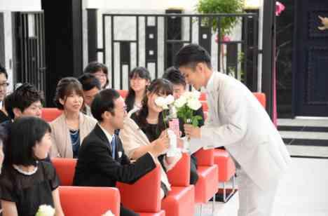ゲストの皆様にご参加いただくブーケ・ブートニア伝説☆ 愛する人に思いを伝える為に集められたブーケ。その思いを受けとめてブーケから一輪取りお返事をされる演出。とてもロマンチックでお二人だけではなくベストの皆様の思い出にも残る挙式です。