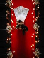 赤絨毯のヴァージンロードと 上質なウェディングドレスは相性抜群☆ 高さのある祭壇からベールが広がるバックスタイルは 映画のワンシーンのような素敵な姿に。