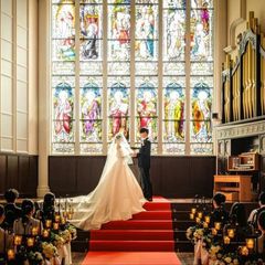 【200年の歴史を体感】宝石が散りばめられたロイヤルステンドグラスの輝きがお二人を包み込みます。朝9時開始の第一部では生演奏も体験いただけます。天井高12.8mの聖堂に響き渡る演奏を是非体験して。