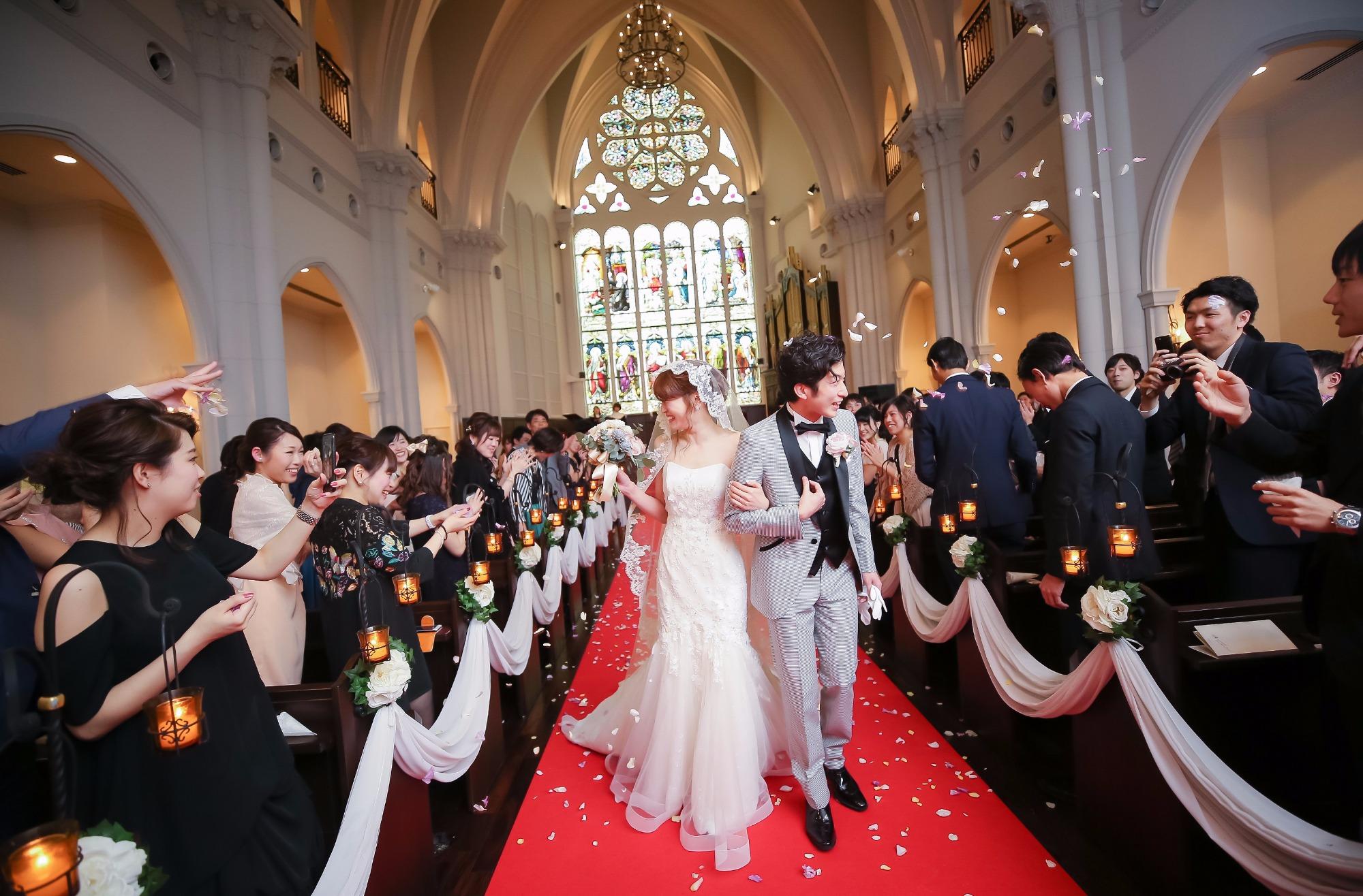 着席数120名を誇る大聖堂では、ご列席100名様であった挙式は圧巻の一言。 拍手ひとつ取っても壮大なスケールで感動が広がりました。
